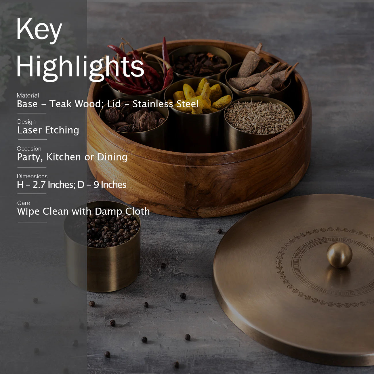 Efficiently store your spices, condiments, and more in our compact and portable Acacia Wood Masala Box. With a space-saving design, this wooden rack sits perfectly on your kitchen counter. Plus, it's a perfect match for your stainless steel appliances. Keep your kitchen organized and stylishly quirky!