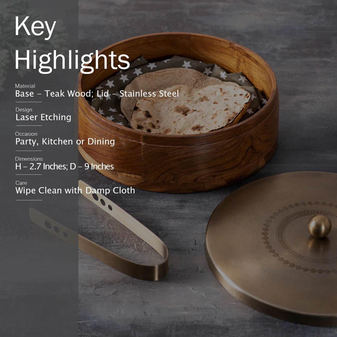 Elevate your Chapatti experience with our Acacia Wooden Roti Box and Tong! Handcrafted and designed to lock in freshness and keep Chapatis warm, our wooden casserole is the perfect addition to any kitchen. Say goodbye to cold Chapatis with the included tong for easy serving. Experience the difference today!