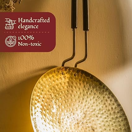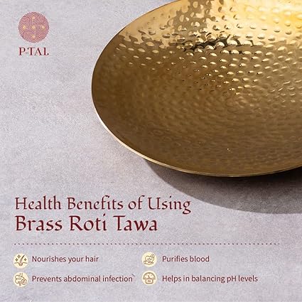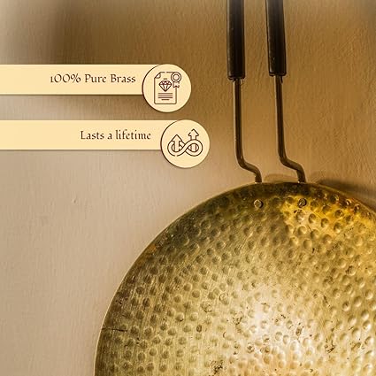 Upgrade your cooking game with this versatile Brass Tawa! Handcrafted in pure Brass with a golden finish, it's perfect for making healthy and delicious rotis, parathas, and more. Its excellent heat conductivity ensures even cooking and retains the nutritional value of your food. Say goodbye to bland meals and hello to a flavorful feast!