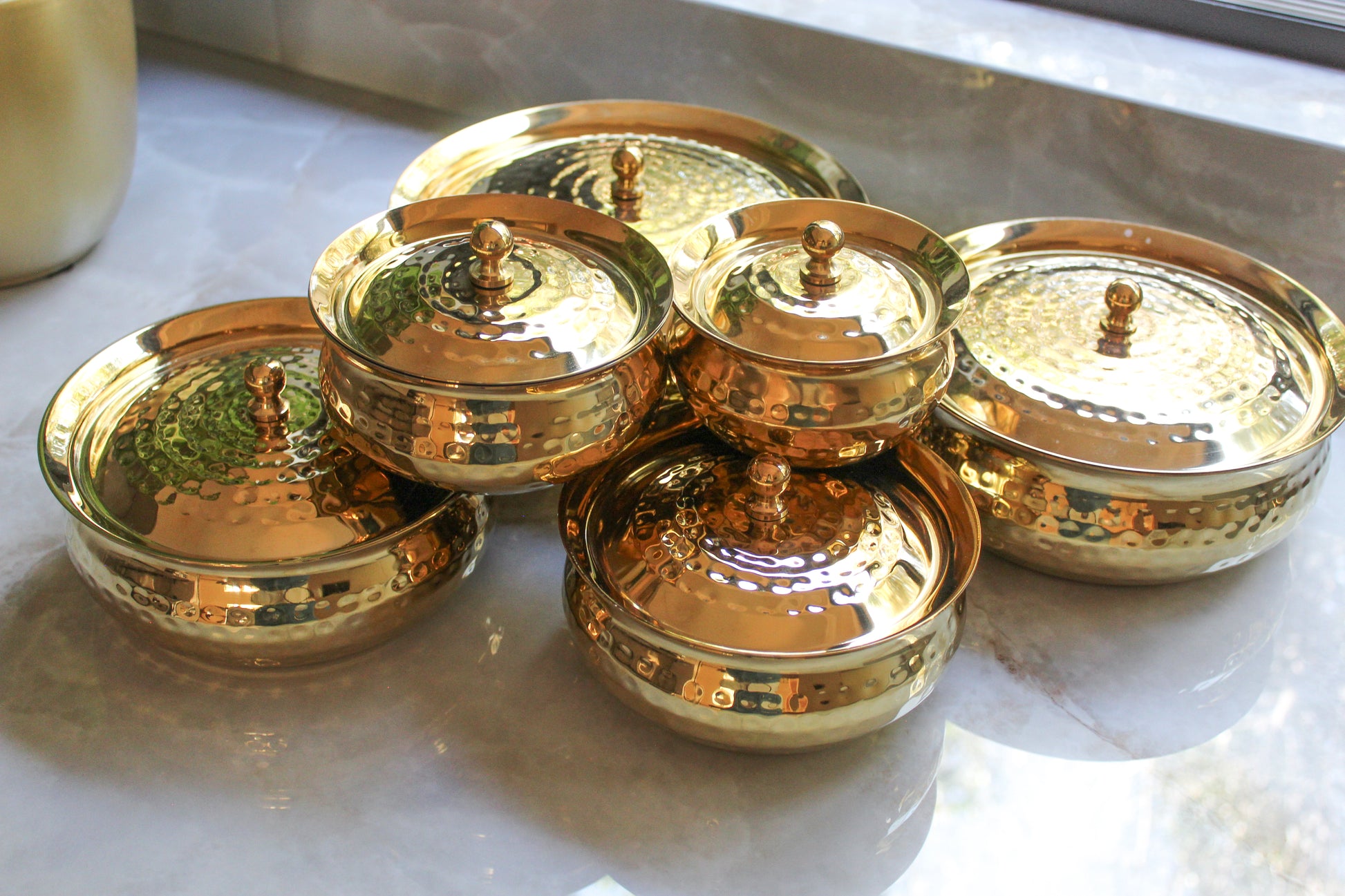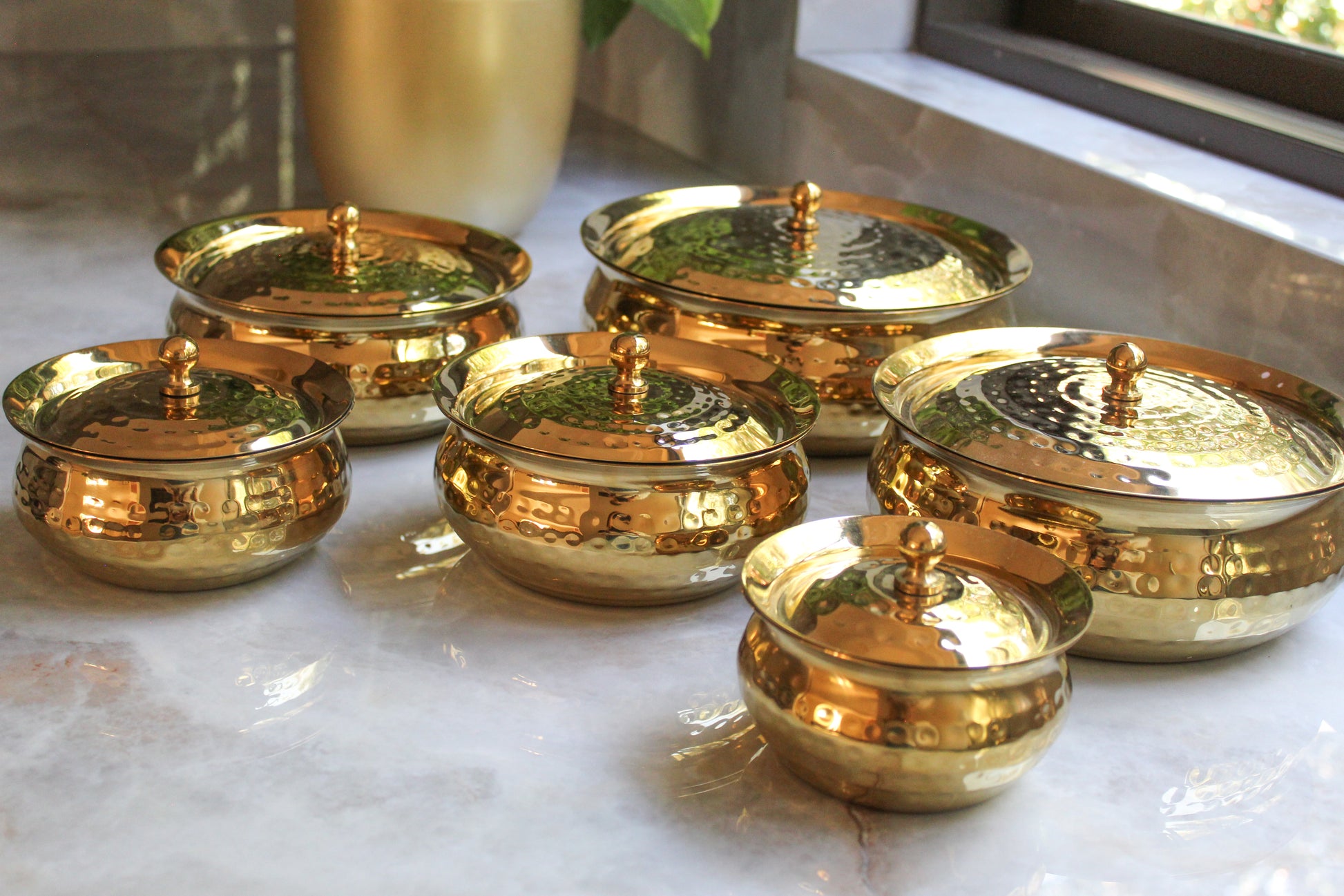 Elevate your cooking experience with our Brass Traditional Pot Set. Made from durable brass, this set includes various pot sizes for all your cooking needs. The heat conductivity of brass allows for even cooking and its durability ensures long-lasting use. Enhance your kitchen with this timeless and functional set.