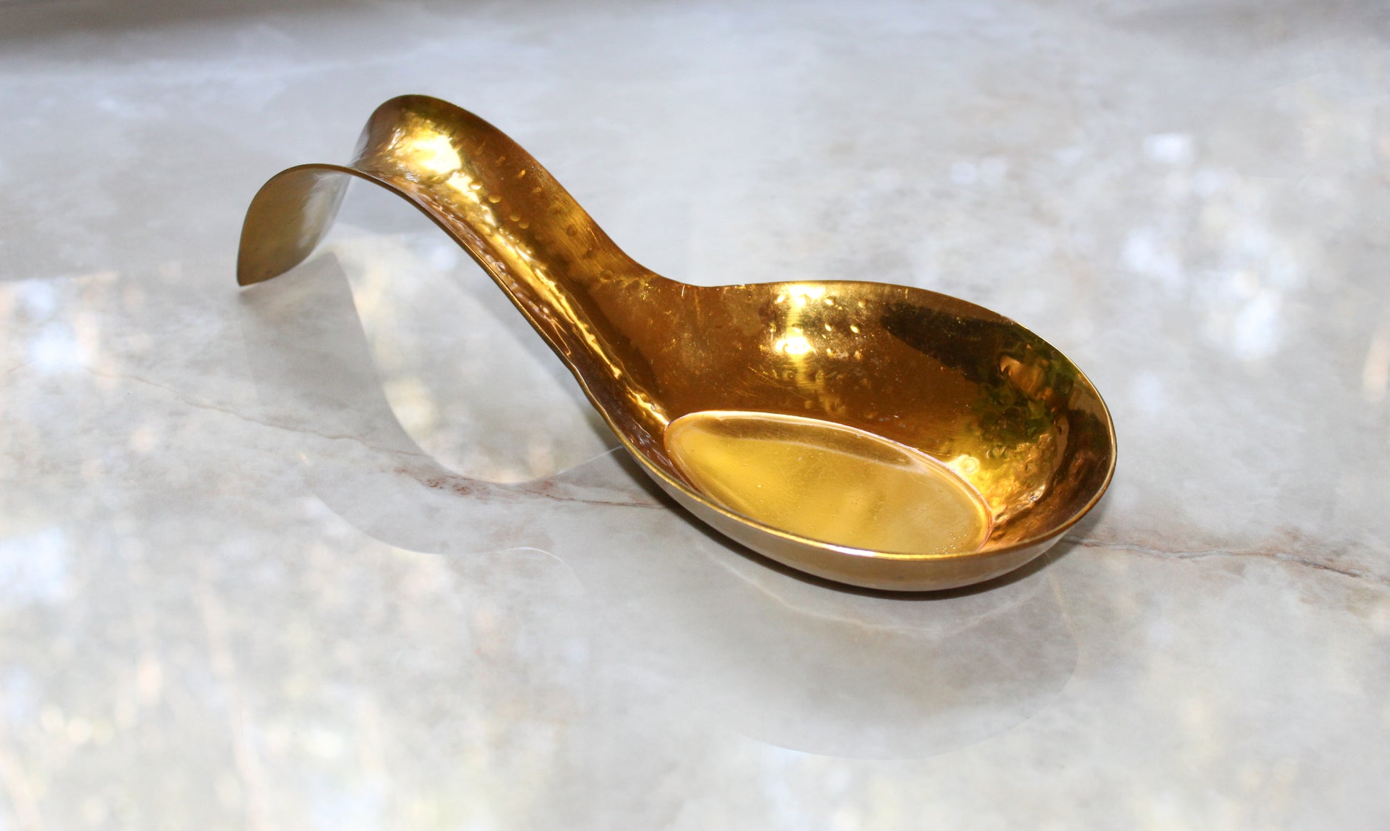 Gold Finish Stainless Steel Spoon Rest for Buffet-Ware. Must add item in your buffet collection. It also helps to keep the table clean