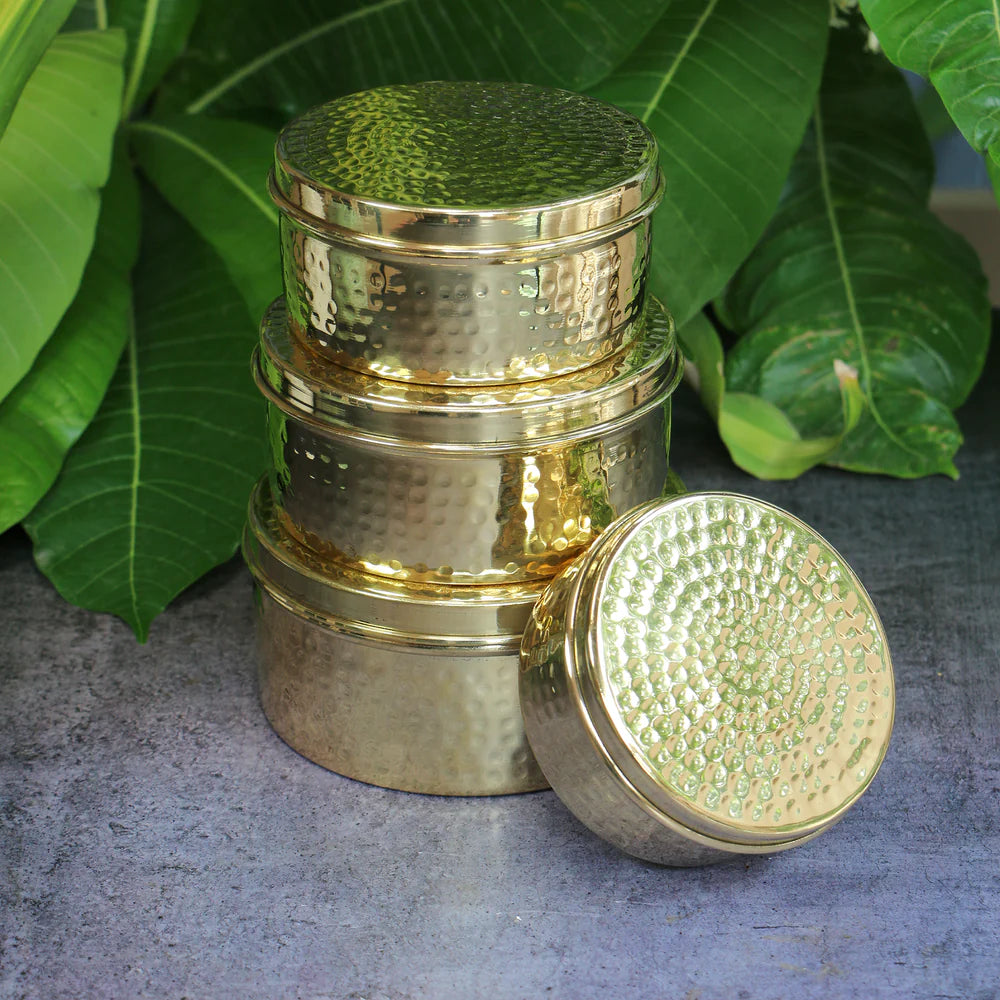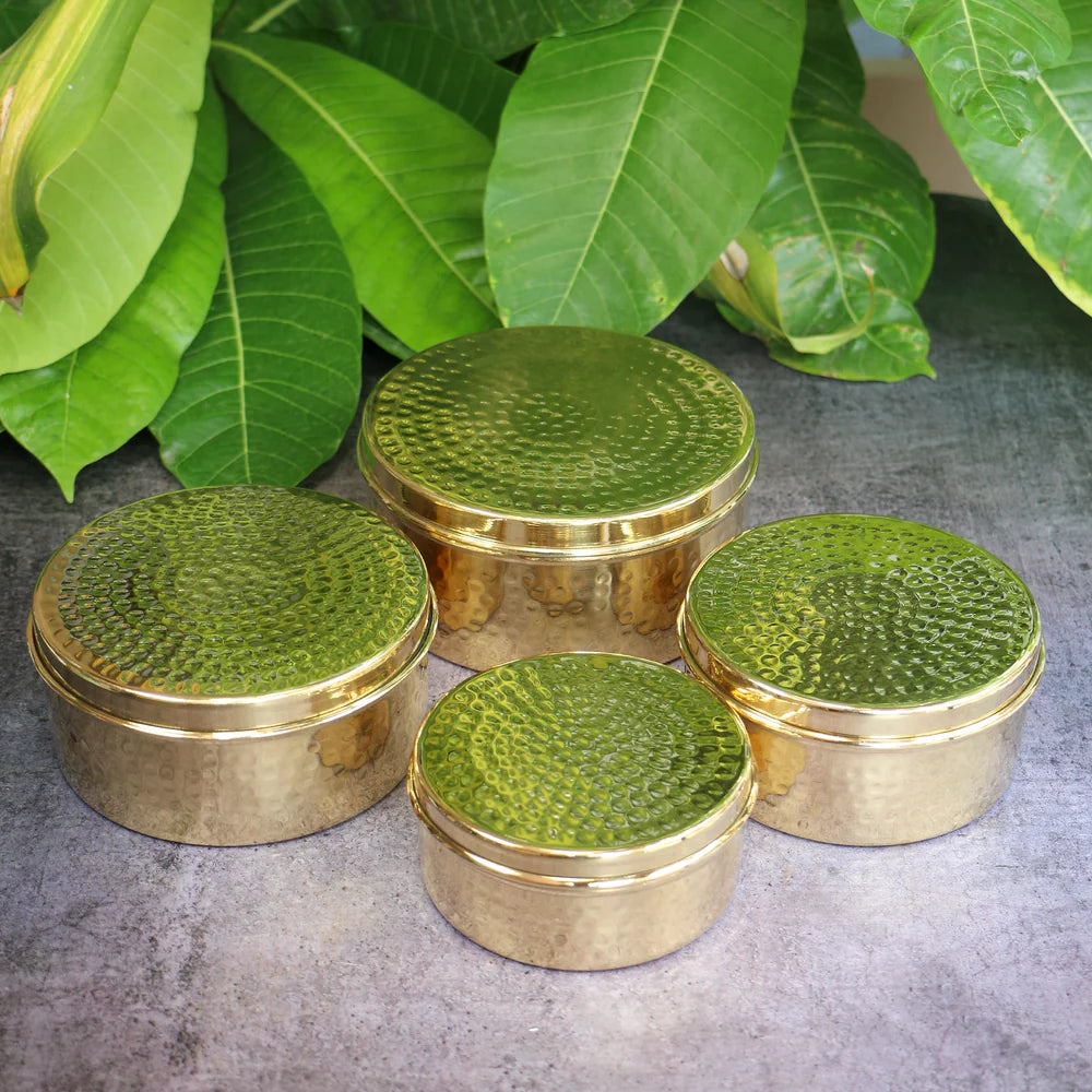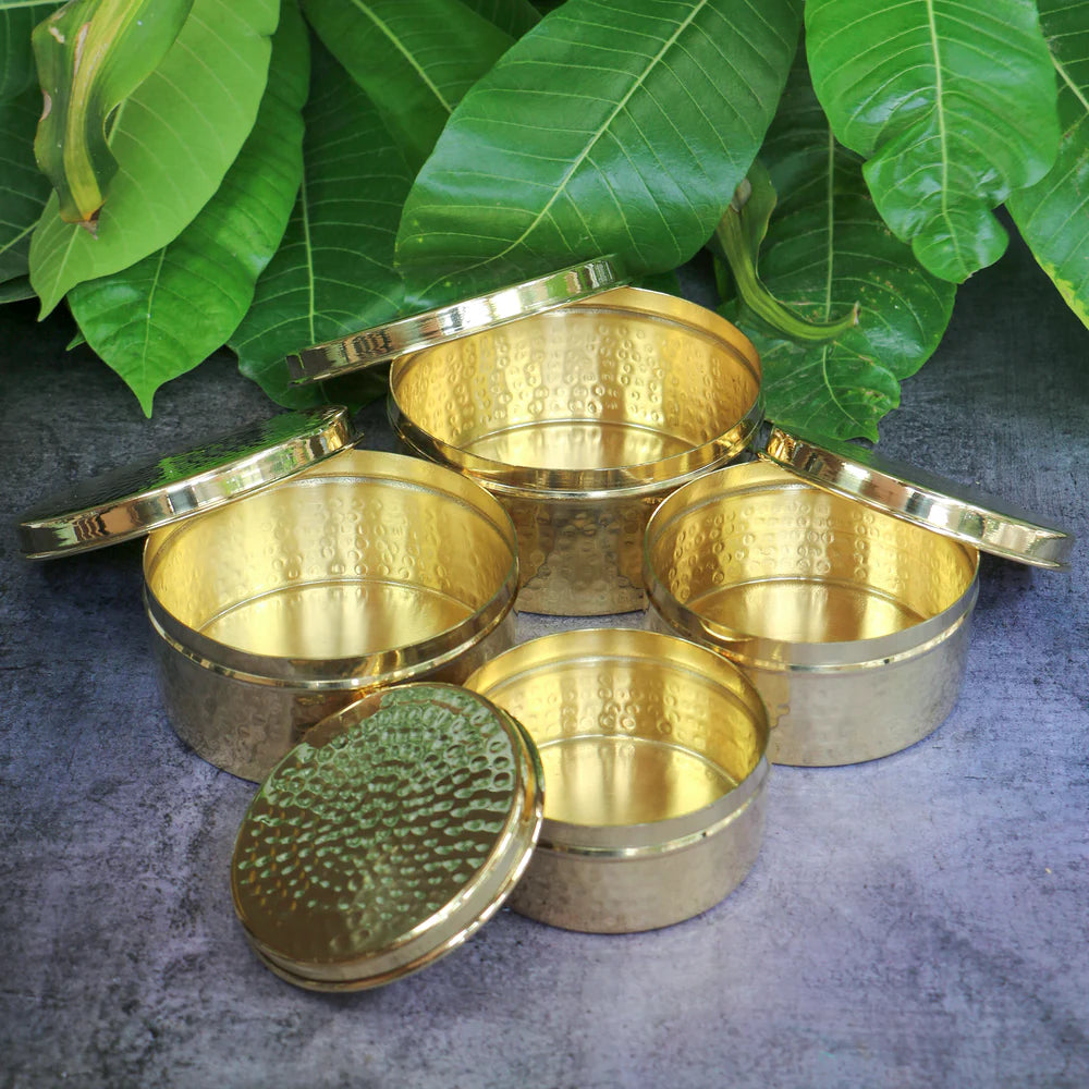 Hammered Brass Biscuit Boxes / Laddu Boxes - Set of 4 boxes