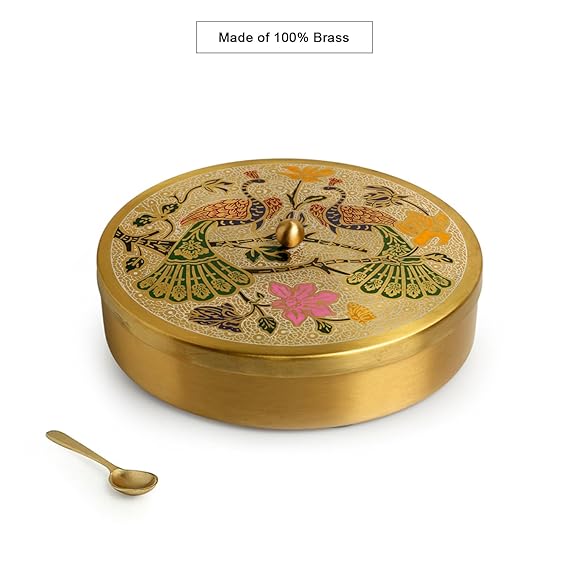 Peacock Hand-Etched' Brass Masala Box
