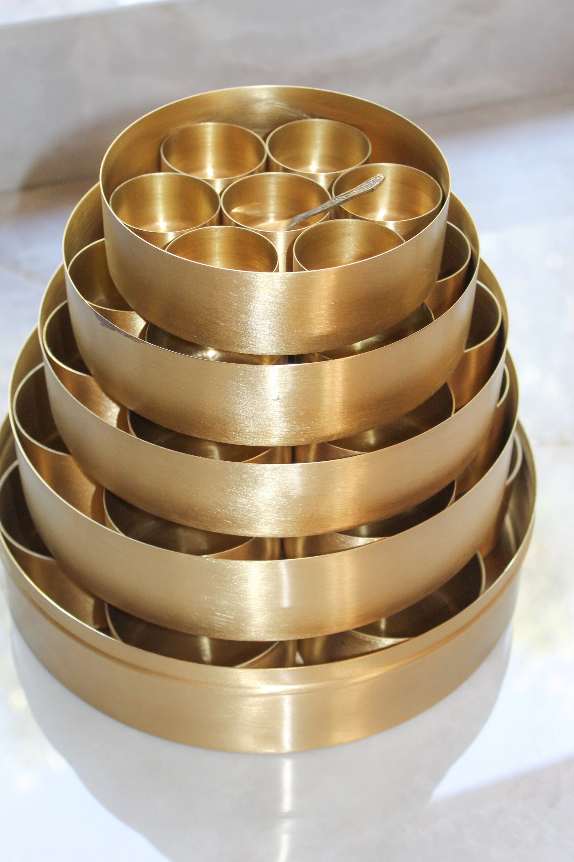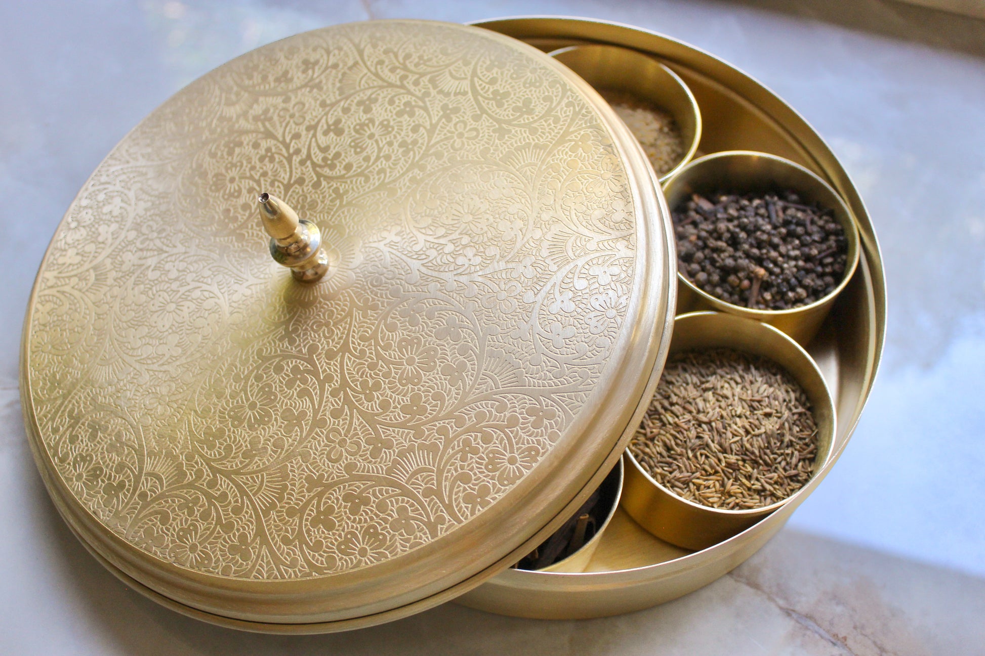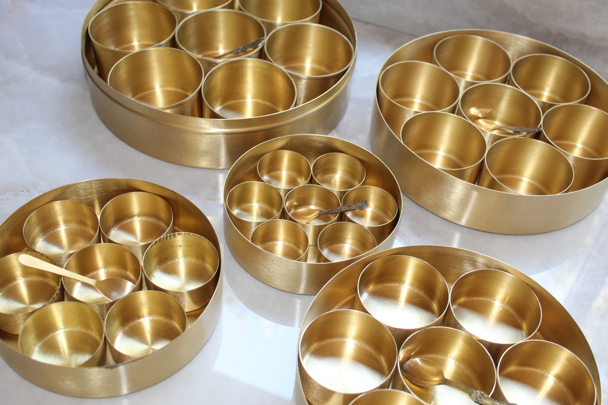 Experience the rich flavors of Indian cuisine with our Shashi Hand Crafted Brass Masala Box. Each masala is hand-crafted to perfection, bringing out the vibrant tastes and aromas. Take your cooking to the next level with this beautiful and functional kitchen essential.